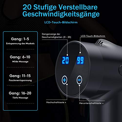 Specification: AERLANG Muskel Massagepistole, Massagegerät, Massage Gun mit 20 abgestimmten Intensitätsstufen, Muskelmassagegerät mit…