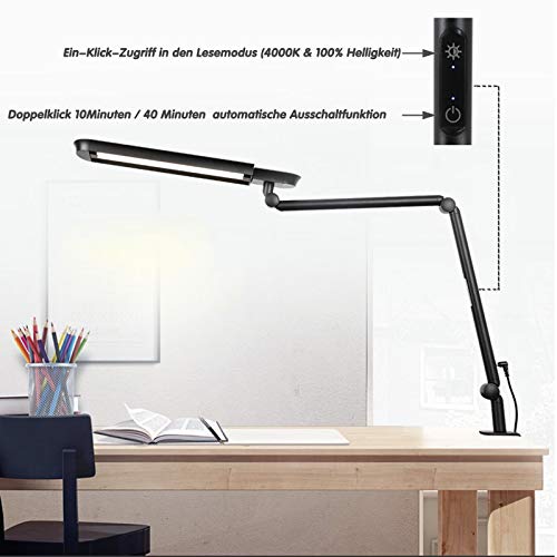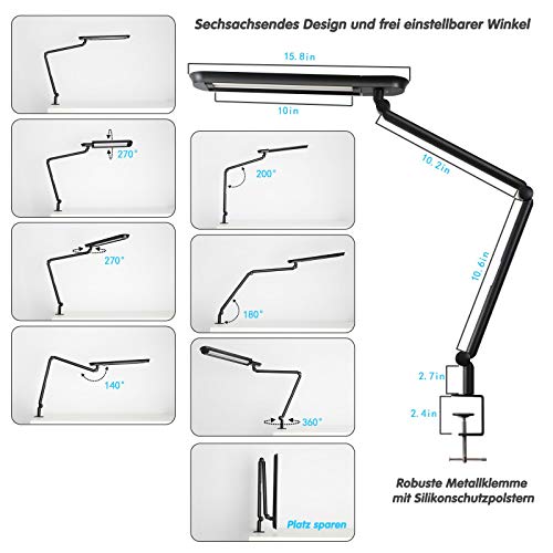 Specification: Schreibtischlampe, AmazLit LED Schreibtischlampe 1100 Lumen mit Klemme Schwenkarm Architektenlampe 18W Hohe Helligkeit…