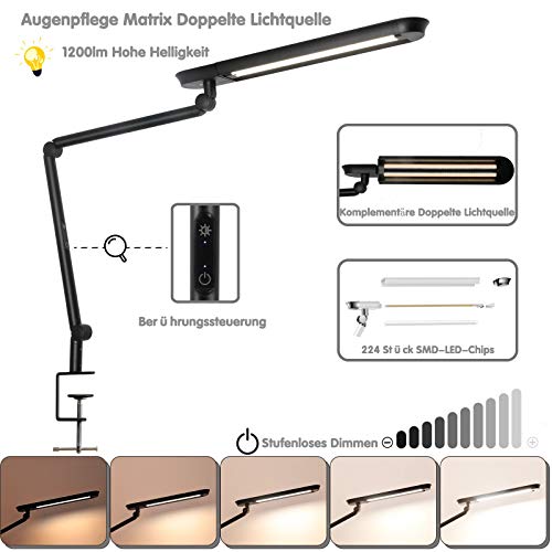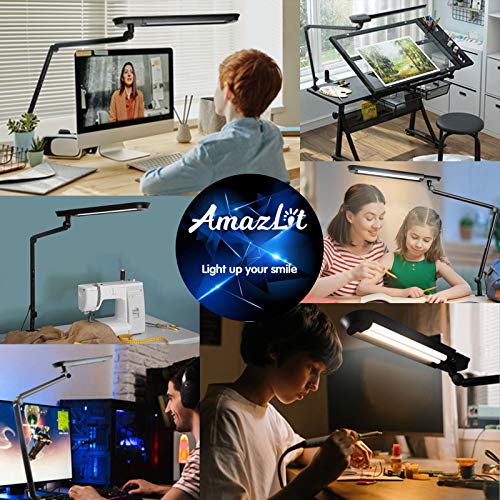 Schreibtischlampe, AmazLit LED Schreibtischlampe 1100 Lumen mit Klemme Schwenkarm Architektenlampe 18W Hohe Helligkeit…