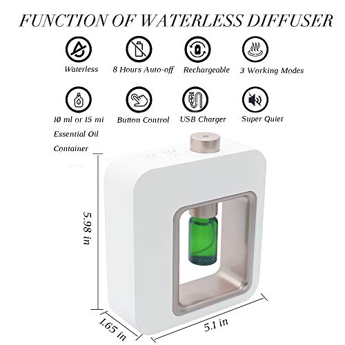 Draagbaar: het unieke draagbare en draadloze design van deze oliediffuser met geïntegreerde lithiumbatterij maakt een volledige gebruiksduur van 8 uur bij het opladen mogelijk. Dit maakt het perfect voor vele scenario’s, waaronder aromatherapie, zakelijke accommodatie, gebruik in privéhuishoudens, yoga, spa, camping en reizen. Het slanke ontwerp van onze verstuiverdiffuser ziet er geweldig uit in je auto, kantoor en slaapkamer.